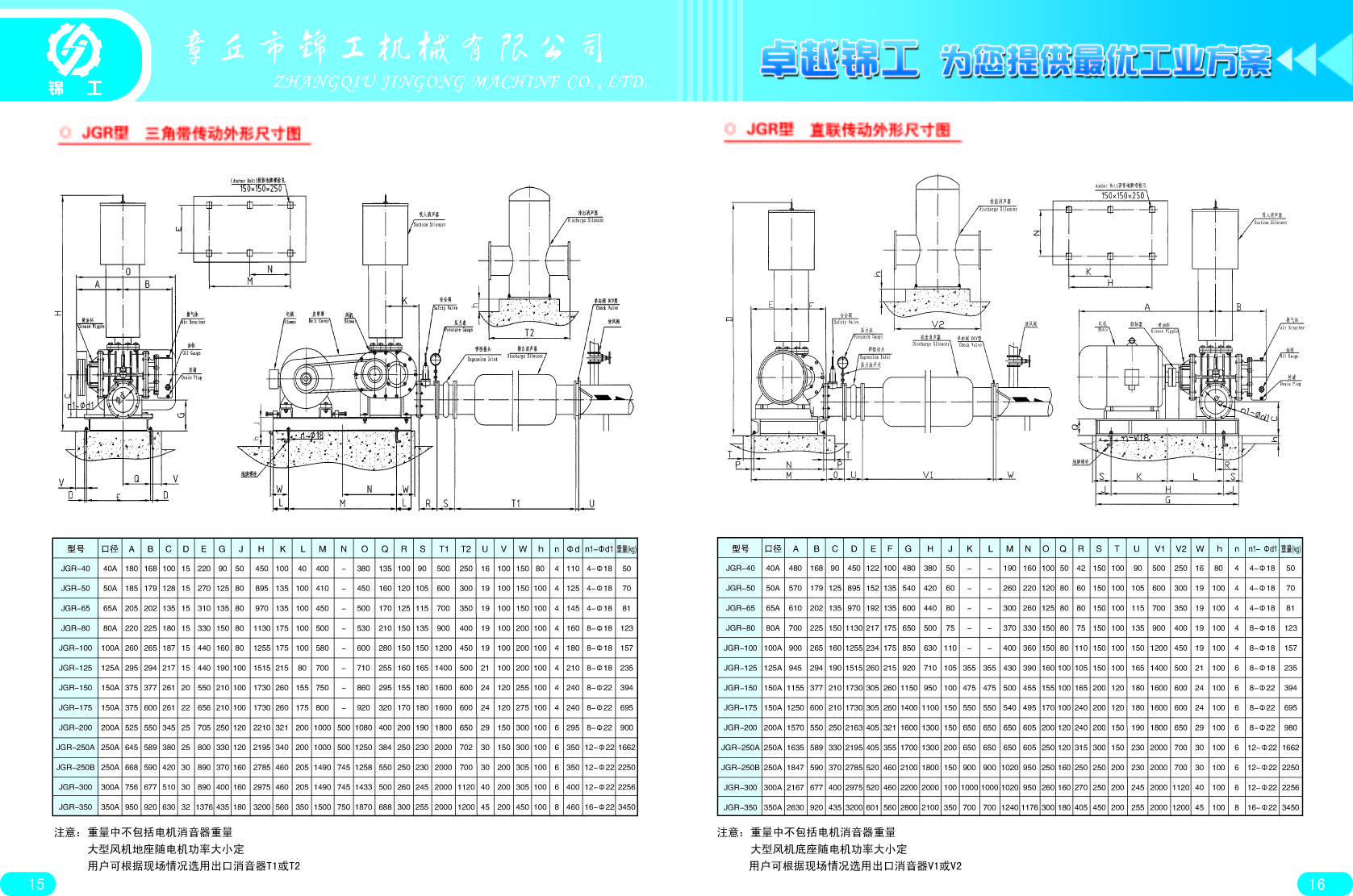 以上為羅茨風機外形尺寸圖,與國內各大品牌通用,CAD文件如有需要,可致電山東錦工有限公司索取。