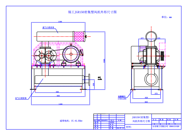 錦工150羅茨風機安裝圖