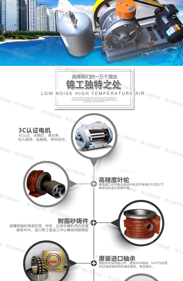 5、材質(zhì)精良,結(jié)構(gòu)巧妙,性能卓越。鼓風(fēng)機全部采用優(yōu)質(zhì)的材料,結(jié)構(gòu)精巧,堅固耐用,性能卓越,長期使用故障少。