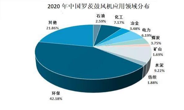 羅茨風(fēng)機下游需求廣泛,包括環(huán)保、化工、水泥、電力、冶金、煤炭、等行業(yè),其中環(huán)保已成為最大的下游應(yīng)用領(lǐng)域,2021年占比達46.18%;其次水泥、化工、電力行業(yè)分布占比7.22%、6.17%、1.19%。